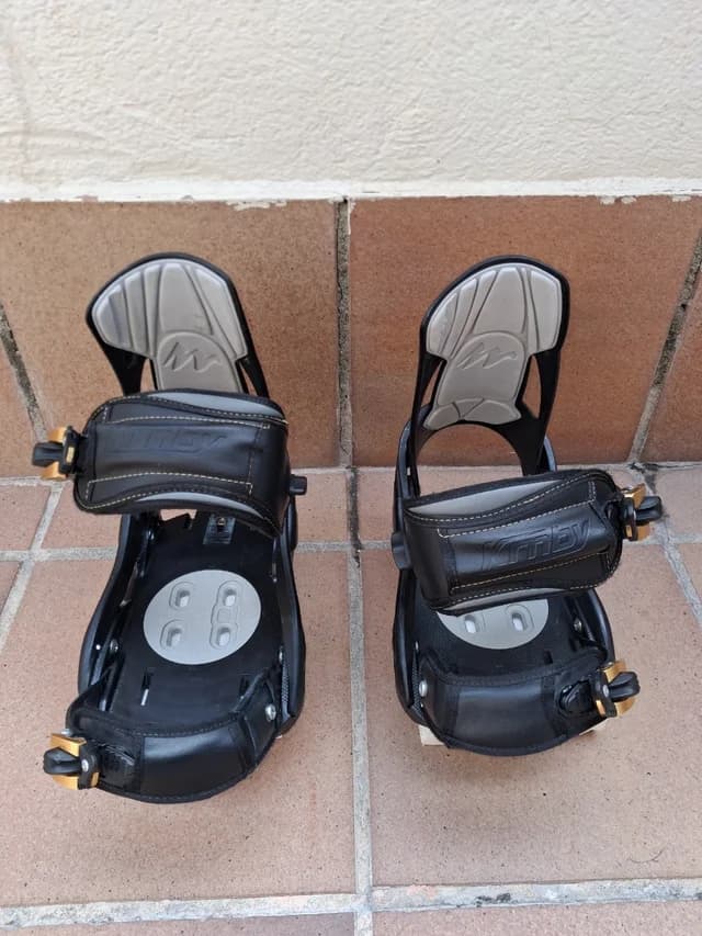 Fijaciones de snowboard Decathlon, de gama media-alta. Están en buen estado y listas para usar. Marcas de uso, pero bastante bien. Muy cuidadas. - Modelo K2 - Color negro carbono con detalles dorados - Sujeción cómoda y segura - Ideales para nivel bajo-intermedio - Se venden las dos fijaciones completas con tornillos y arandelas originales